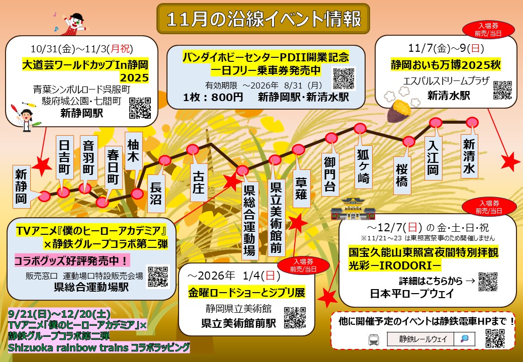 | 静岡おいも万博2025秋 | 開催日:11/7~9 | 最寄り駅:新清水 | 外部サイトへ |