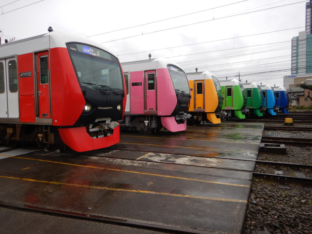 今回の搬入により2016年春より順次導入してまいりました新型車両A3000形「静岡レインボートレインズ」の7色のラインナップが完成しました!