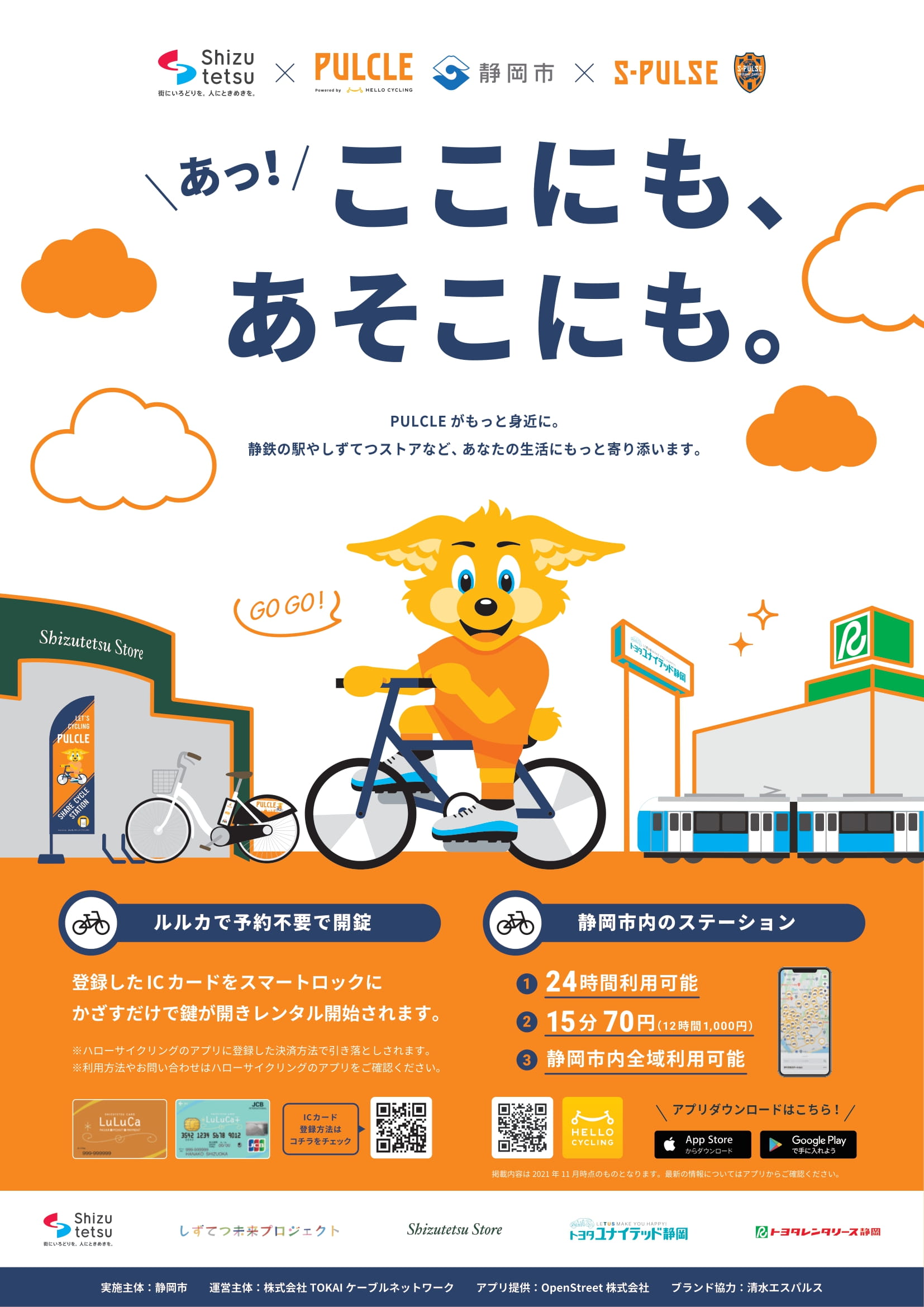 静岡鉄道が取り組む「しずてつ未来プロジェクト」の一環として、静岡市シェアサイクル事業「PULCLE(パルクル)」のレンタルステーションを静鉄電車の一部の駅に設置いたしました。