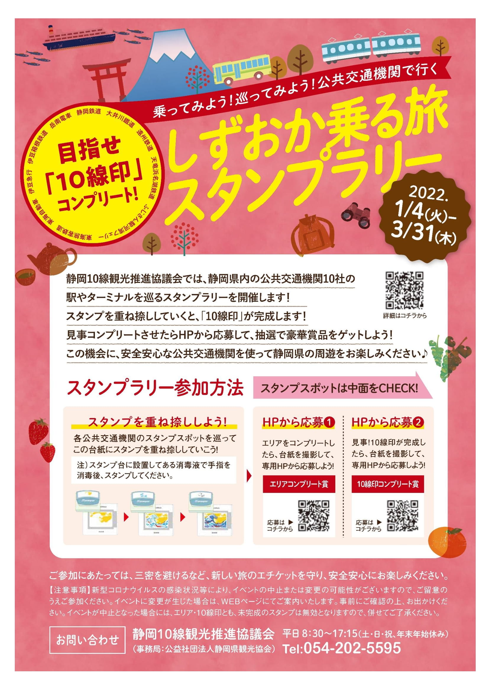 静鉄電車が加盟する静岡10線観光推進協議会(静岡県内の交通事業者で構成)では、静岡県内周遊の「重ね捺しスタンプラリー」を開催いたします。