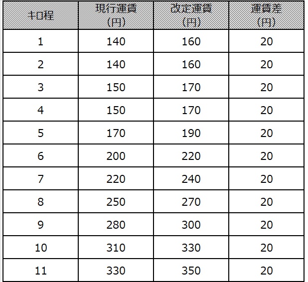 ・初乗り運賃 140円を160円に改定