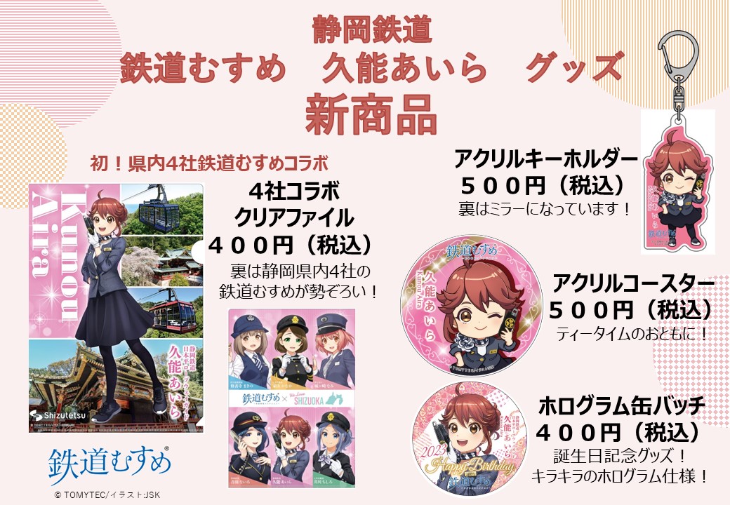 この度、当社の鉄道むすめ「久能あいら」のグッズが静鉄オンラインショップにて販売開始となりました。
