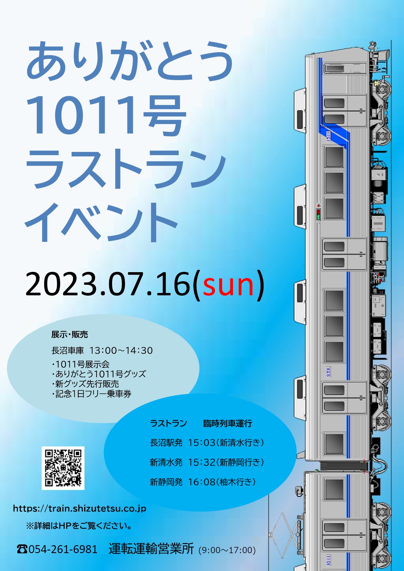 | 販 売 | ・ありがとう1011号グッズ コースター、下敷き、トートバッグ ・1000形50周年記念グッズ コースター、キーホルダー ・1000形定規(再販) ・新規グッズ先行販売(PIICA) ・記念ワンデーパス ※大人のみ(ありがとう1011号デザイン) ポストカード付 |