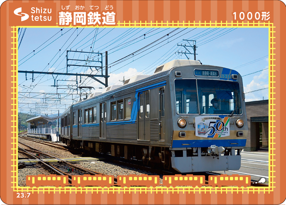 ・静鉄電車グッズを税込500円以上ご購入いただいたお客様に1枚配布いたします。