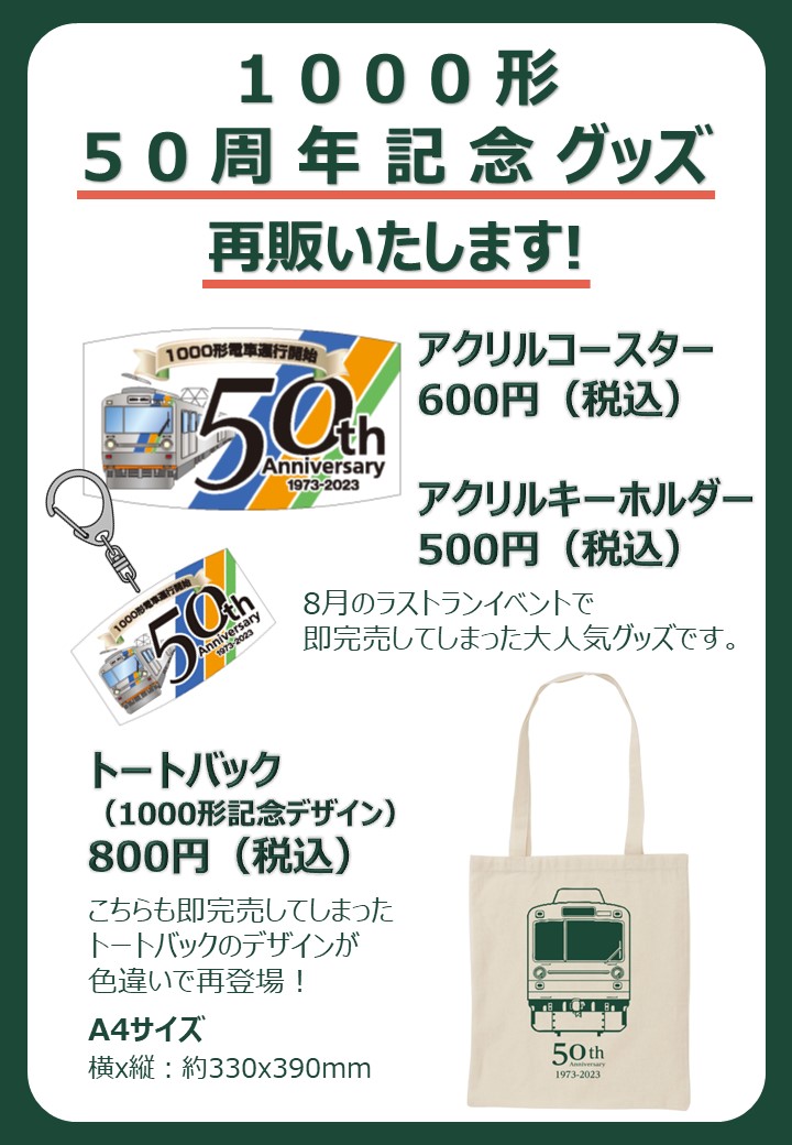 下記静鉄電車オリジナル「1000形50周年記念グッズ」が再販となります!!!