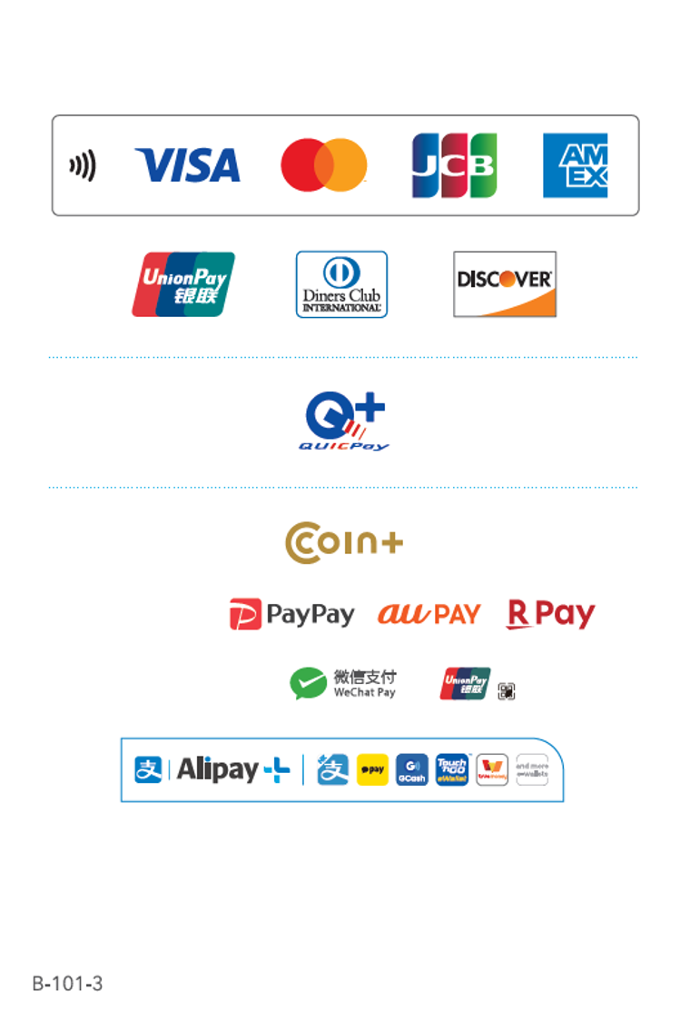 クレジットカード(VISA・MasterCard・UnionPay・JCB・American Express・Diners Club・Discover)、
