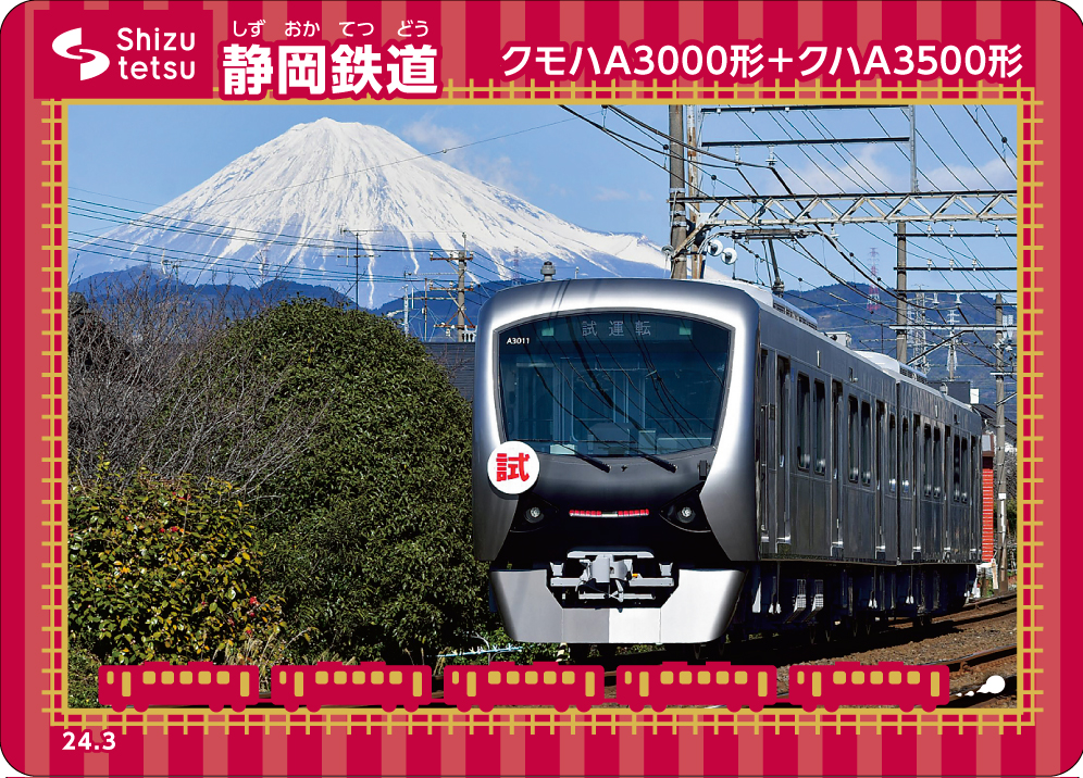 ・静鉄電車グッズを税込500円以上ご購入いただいたお客様に1枚配布いたします。