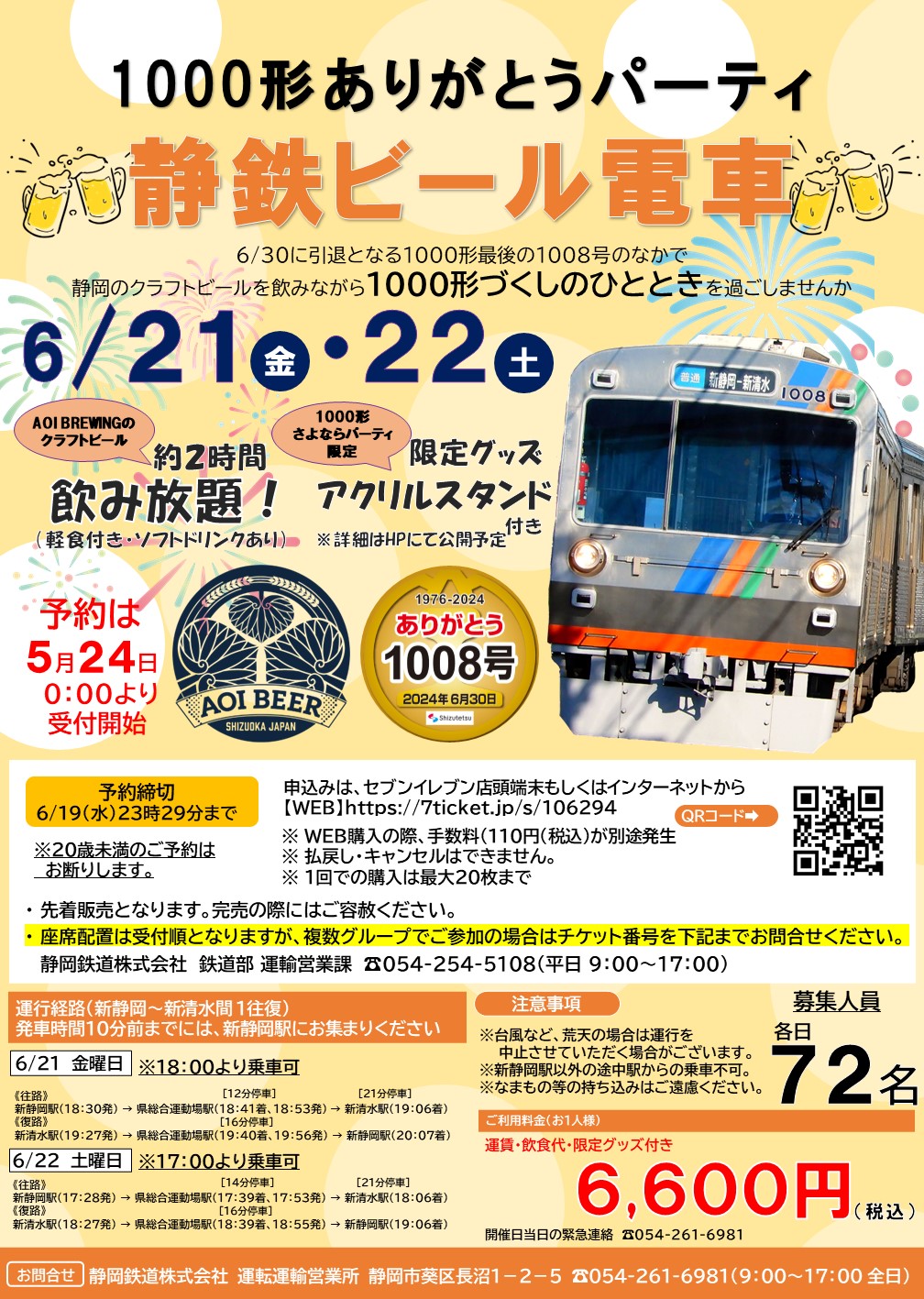 「1000形ありがとうパーティ 静鉄ビール電車」開催のご案内🍺