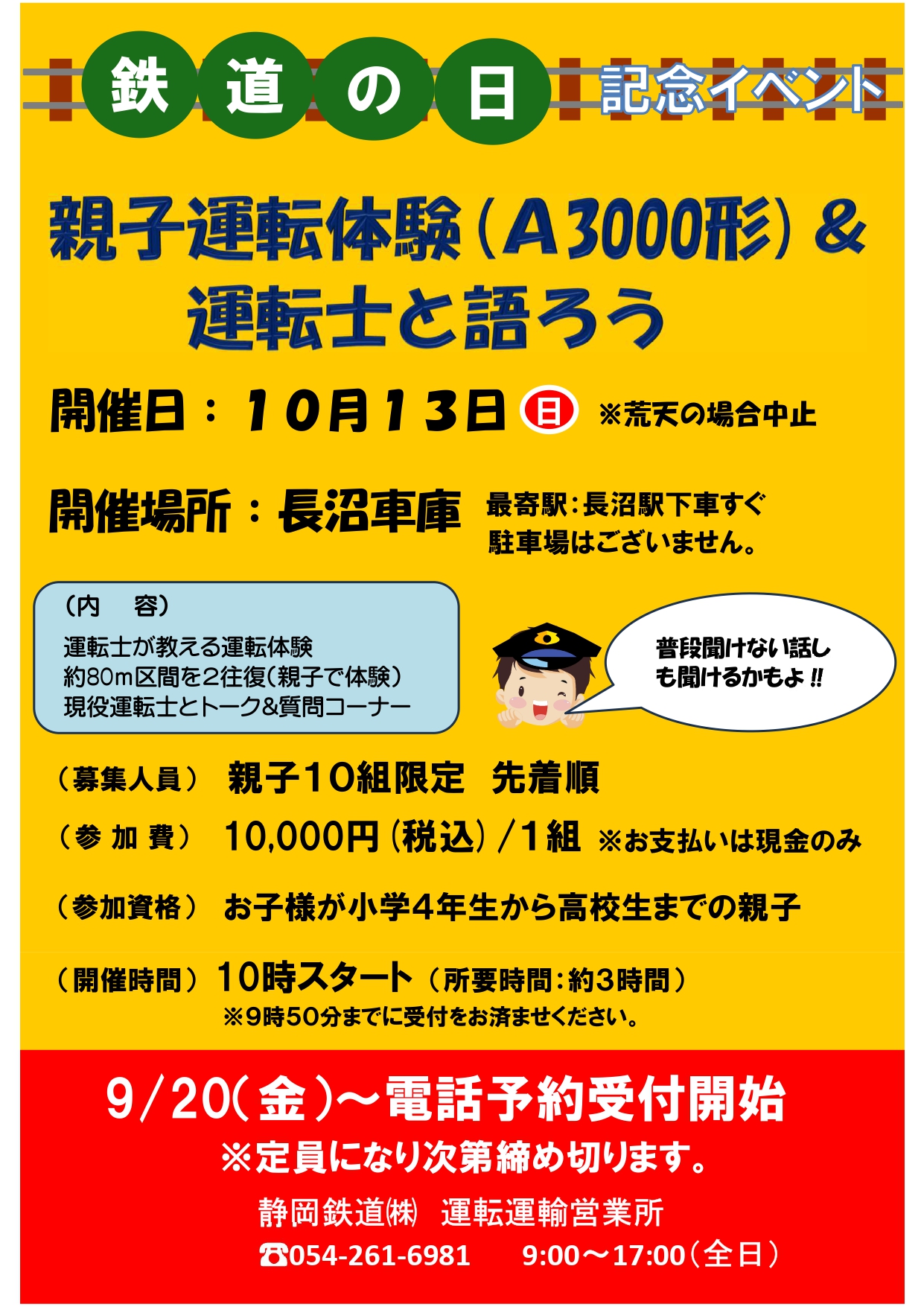 10/13「鉄道の日」記念イベント『親子運転体験(A3000形)&運転士と語ろう』について