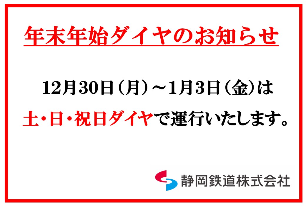 2024年12月30日(月)~2025年1月3日(金)は【土・日・祝】ダイヤで運行いたします。