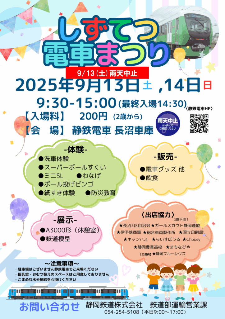 (9/13雨天中止)9/13(土)・14(日)「しずてつ電車まつり」開催について